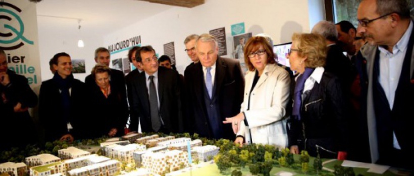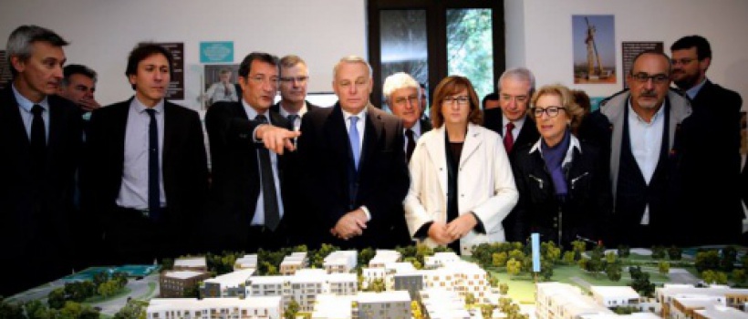 Inauguration de l'exposition sur le Quartier Camille Claudel en cours de construction, en présence du Premier ministre Jean-Marc Ayrault, du ministre de la Ville François Lamy, de la ministre de l'Enseignement supérieur Geneviève Fioraso et du ministre de l'Écologie, du Développement durable et de l'Énergie, Philippe Martin.