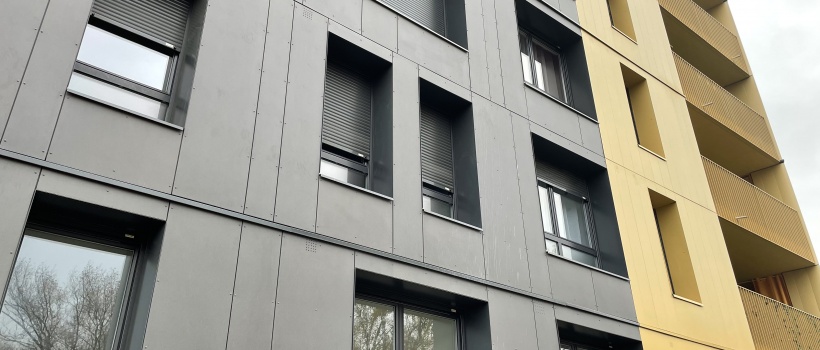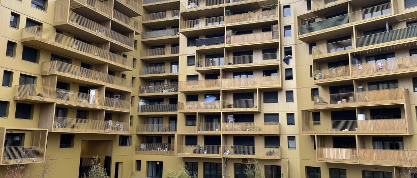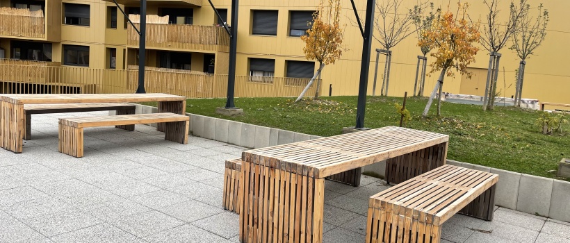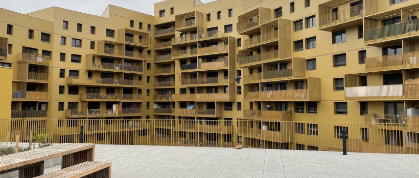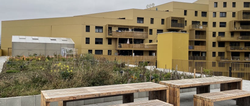 Golden Parc à Échirolles. L'opération livrée il y a un an à peine, comprend 225 logements dont 149 logements locatifs sociaux de la Société Dauphinoise de l'Habitat. Golden Parc est une belle illustration de mixité sociale et intergénérationnelle. Sur les 149 logements locatifs sociaux : 10 sont à destination des jeunes & 57 sont adaptés pour les seniors et bénéficient d'adaptations techniques spécifiques en plus des normes habituelles. Le projet propose également une conciergerie, des locaux partagés et un jardin partagé.