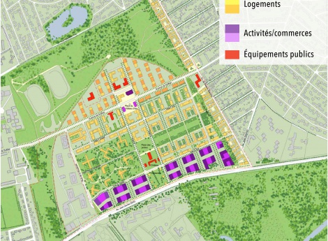 La trame urbaine offrira diverses formes construites, du logement pavillonnaire aux ensembles intermédiaires, en passant par la villa modulaire en duplex.